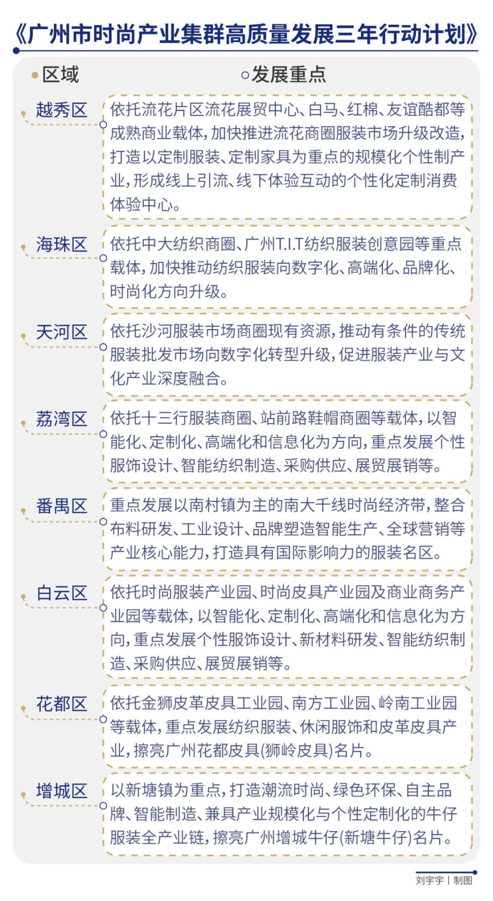 图 |《广州市时尚产业集群高质量发展三年行动计划》中对各区在服装分链的规划