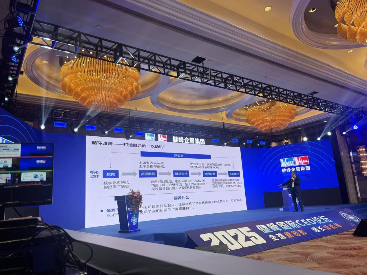2025年11月9日,浙智专委主任徐纪平在“2025健峰国际CEO论坛”作了《双轮驱动:数字化与精益化融合共促企业发展》的主题辅导,围绕当前制造业面临的挑战与机遇,深入阐述了数字化与精益化深度融合的必要性与实施路径。