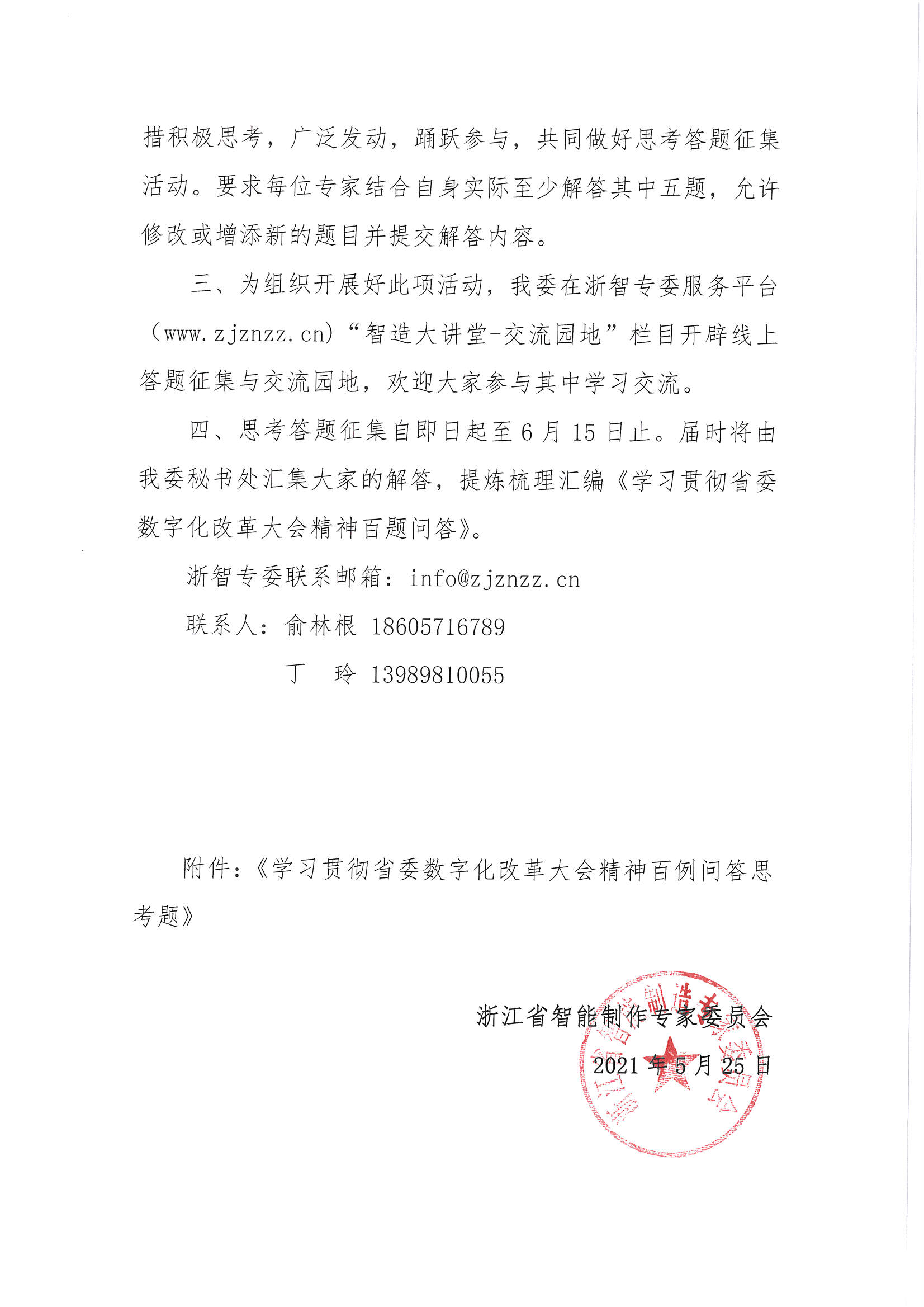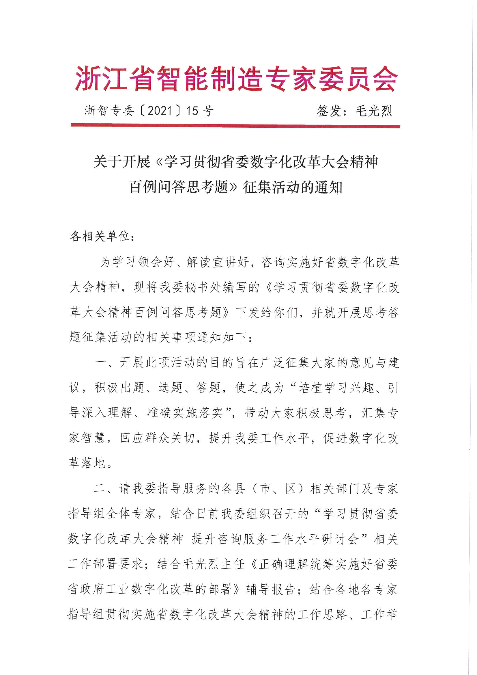 新春伊始,省委召开数字化改革大会,全面部署了以数字化改革带动全省数字经济发展的新举措。浙江省智能制造专家委员会作为智能制造提供实际操作咨询服务的智库,带头学习领会好、解读宣讲好,并结合推进智造的实践咨询落实好省委数字化改革大会精神是我委当前的一项重要任务。